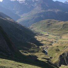 2° Giorno: Al mattino, di buon’ora, si riparte. Direzione Nord. Colle n. 4. È un mito, una leggenda del Tour de France (ma scopriamo anche dei moto turisti): Col dell‘ Izoard (mt. 2360) La strada è una delle più belle mai fatte. Dopo un primo tratto in una sorta di canyon, con la strada che entra letteralmente dentro la montagna, si alternano veloci rettifilo e bellissime curve ampie e ben disegnate, su un asfalto perfetto. Intorno ai 1800 mt, la vegetazione si dirada fino a scomparire quasi del tutto, lasciando spazio a ghiaioni imponenti, pietraie grigie e curiose formazioni rocciose simili a enormi stalagmiti. Cosa chiedere di più? Dopo la foto di rito sul passo, scendiamo a Briançon e percorriamo la bella e lunga valle di Serre Chevalier, importante comprensorio sciistico, fino al Col de Lautaret, il colle n. 5. Qui ci meritiamo un panino, una birretta e un caffè. Ma non c’è da oziare troppo. Ci aspetta il nostro colle n. 6: il Col du Galibier. La sommità, a mt. 2462, delimita il Département des Hautes Alpes da quello della Savoie. Si scende fino a St. Michel-de-Maurienne e si piega verso est. Oltrepassiamo il (più modesto) Col du Télégraphe, colle n. 7 in direzione Modane e oltre fino a Lansebourg-Montcenis. Siamo qui dal lato francese del Moncenisio (un altro dei valichi transalpini). Proseguiamo. Ci aspetta il colle n. 8: Col de l’Iséran. Un'altra leggenda del ciclismo. Strada bellissima in leggera e dolce salita fino al villaggio di Bonneval-sur-Arc, affascinante piccolo centro dai tetti in ardesia, che chiude la vallata prima dell’ascesa verso il passo. La salita è spettacolare, tra tornanti a strapiombo, pratoni scoscesi e marmotte che ci attraversano la strada. La sommità è qui ancora maggiore: siamo a 2770 mt e la neve è ancora presente a punteggiare di bianco il grigio delle rocce. Intorno a noi i ghiacciai. La discesa è ripida ma ben disegnata, anche se in molti punti senza protezioni ed in alcuni tratti è meglio non guardare di sotto! Eccoci a Val d’Isère, una delle capitali dello sci francese (e non solo), tappa obbligata della coppa del mondo. Qui ci ospita un ottimo albergo, dove ci attende una spa e una confortevole camera. La cena ci vede invece ospiti della Casserole, ristorante tipico della Savoia, con pareti in legno di pino, immancabili corna di stambecco alle pareti, pentole fumanti di fonduta, raclette e fondue bourguignon. Per quanto ci riguarda, ci “accontentiamo” di un ottimo magret de canard con fichi e salsa al miele. Dopo cena una breve passeggiata e quindi giunti in hotel crolliamo e dormiamo come bambini.